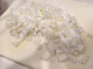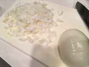 ①玉ねぎ1/2をみじん切りにする。